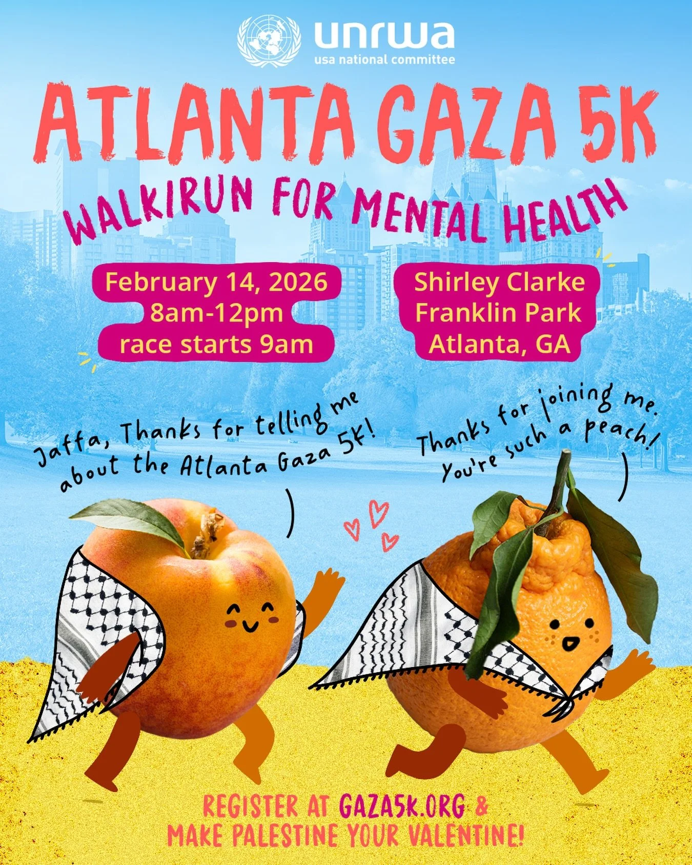On Saturday, February 14, I’m participating in the 2026 Atlanta Gaza 5K to support Palestine refugee children in Gaza and help fund critical mental health services.